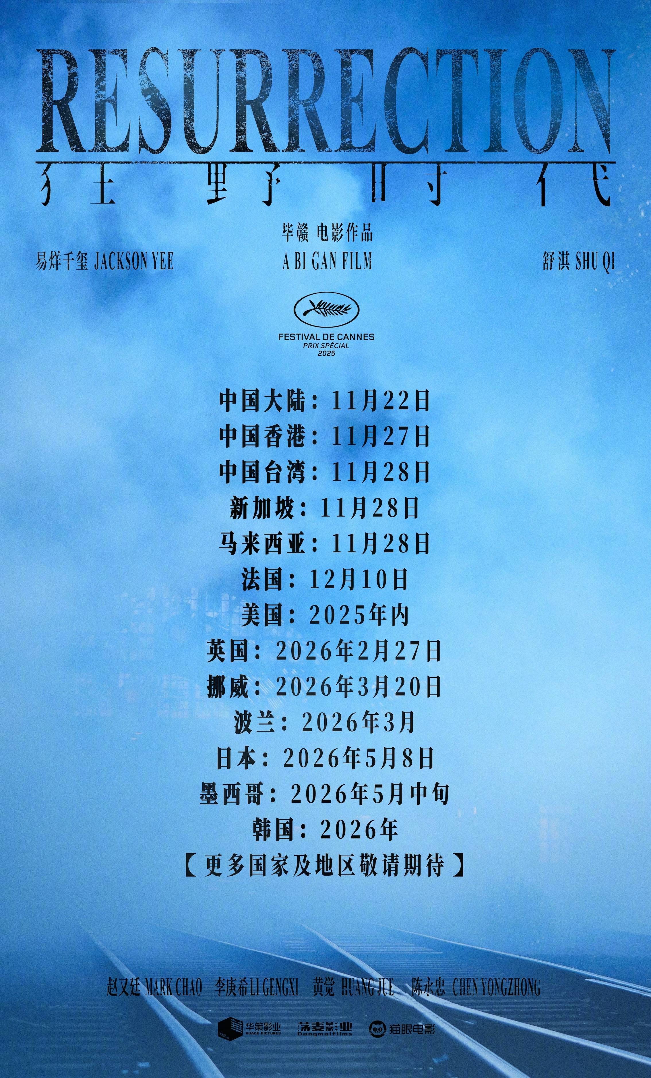 搜狐娱乐讯 毕赣执导,易烊千玺、舒淇领衔主演,赵又廷特邀主演、李庚希特别主演、黄觉、陈永忠主演电影《狂野时代》发布定档海报,官宣定档11月22日上映。同时开启全球多地上映计划:
