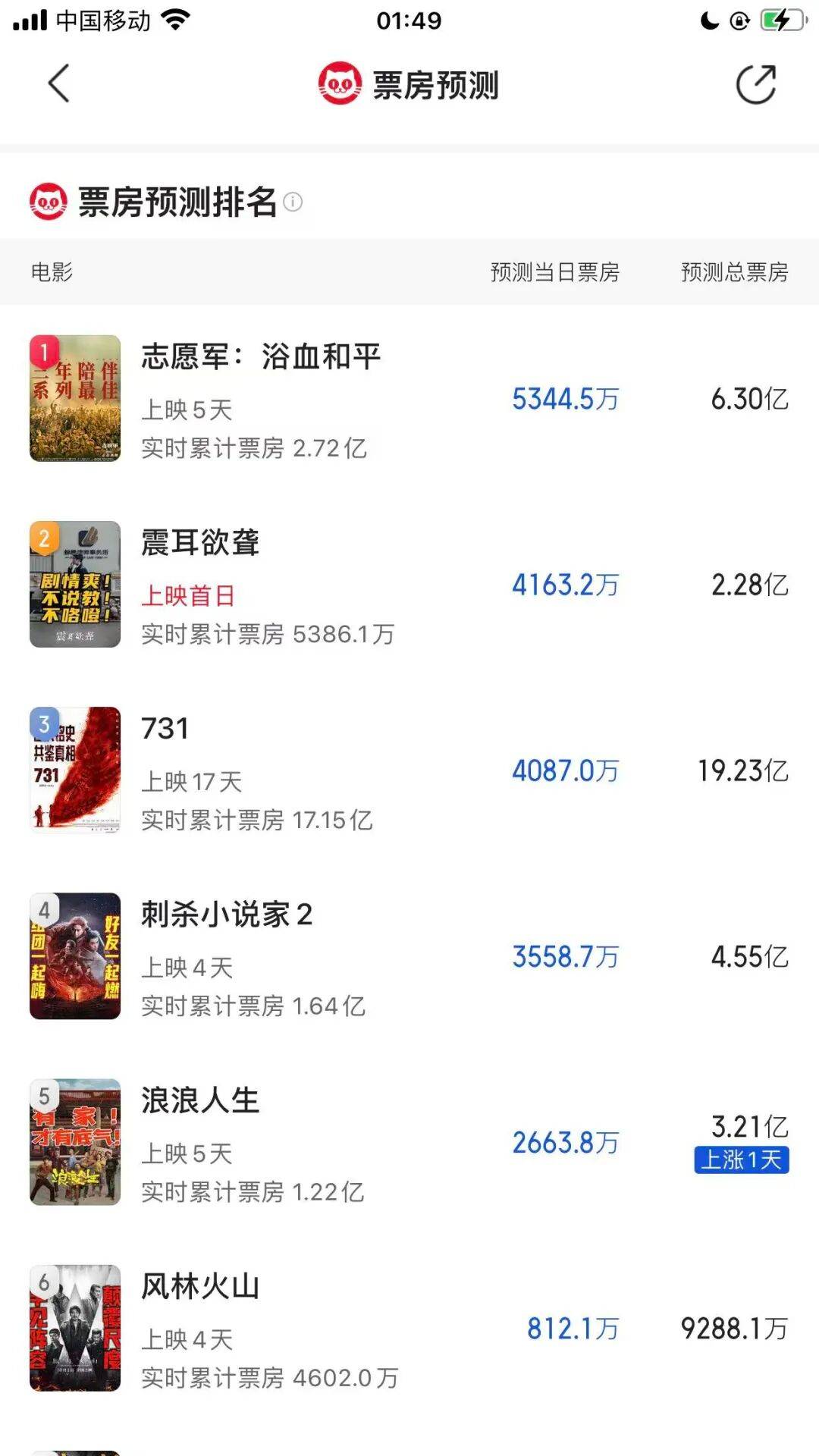 今年国庆档堪称史上最冷,10月1日全国票房3.2亿,接下来两天都不过3亿,《志愿军3》《刺杀小说家2》《浪浪人生》《震耳欲聋》等新片都过不了七亿!